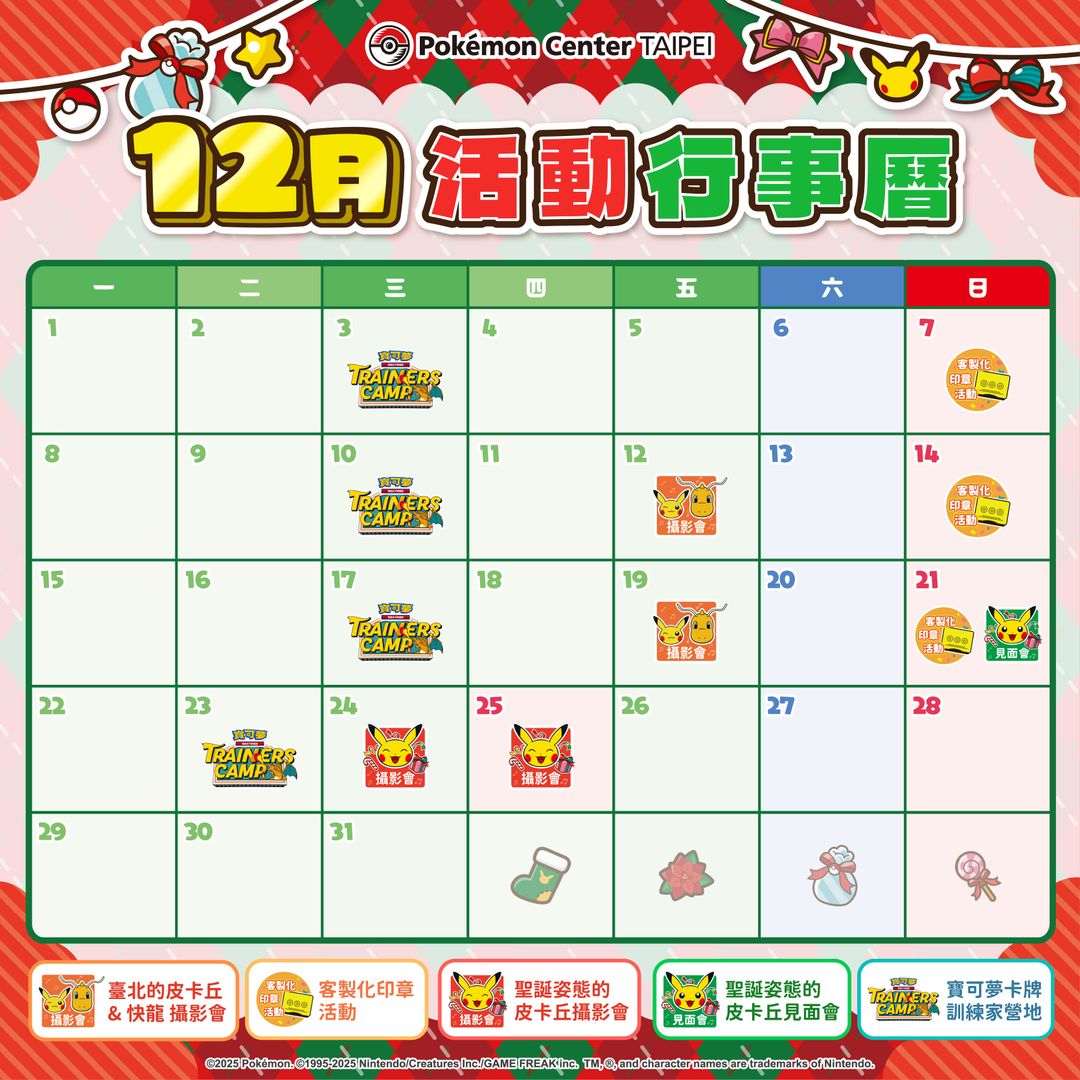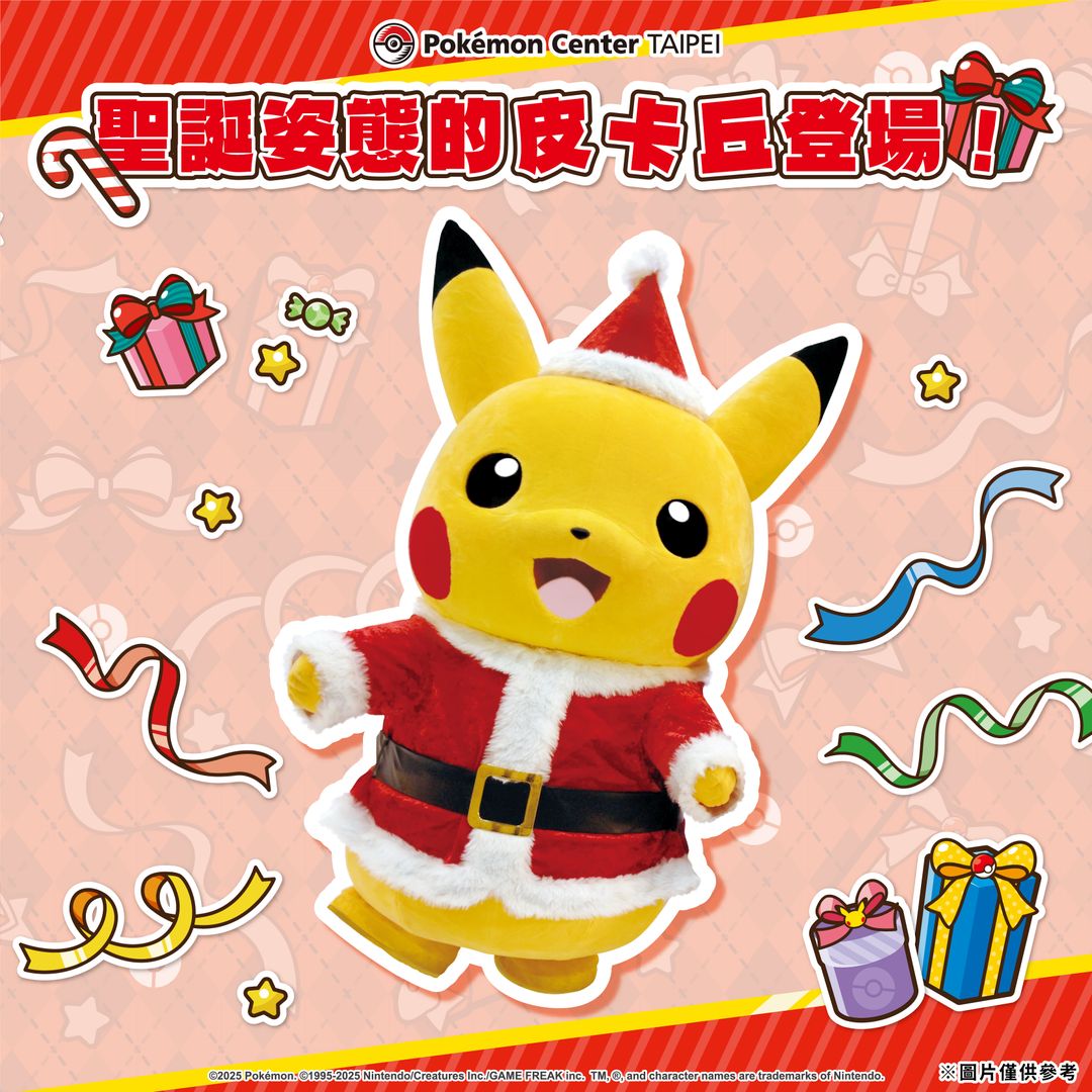 聖誕姿態的皮卡丘將會來到Pokémon Center TAIPEI歡慶聖誕節!有一同歡樂的見面會、以及與訓練家們一起體驗合照樂趣的攝影會喔!