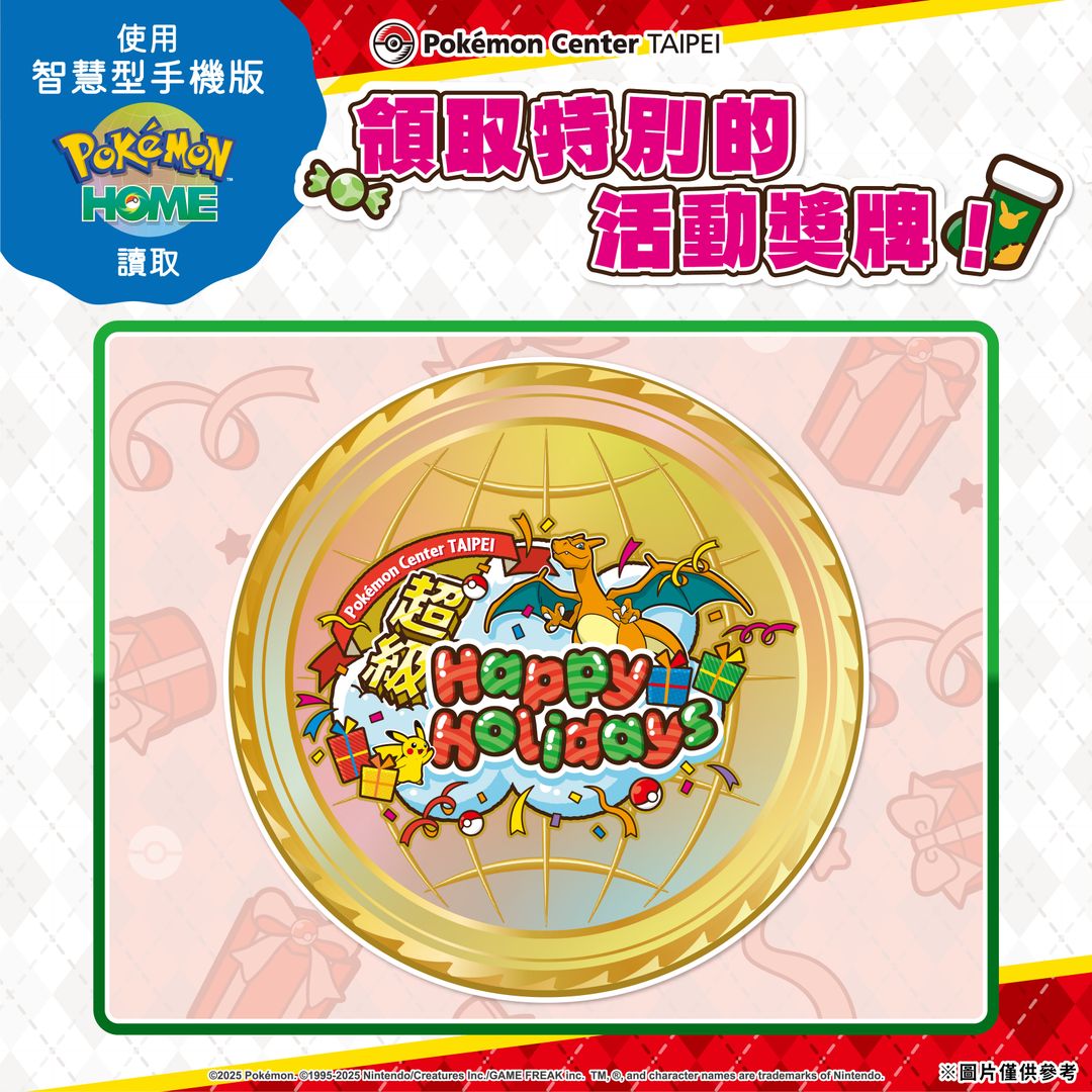 領取「Pokémon Center TAIPEI 超級 Happy Holidays!」獎牌吧!