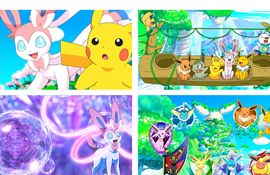 皮卡丘、水水獺 、花椰猴和牙牙參加了伊布及其八種進化的樹屋派對。其中也包括新發現的仙子伊布!